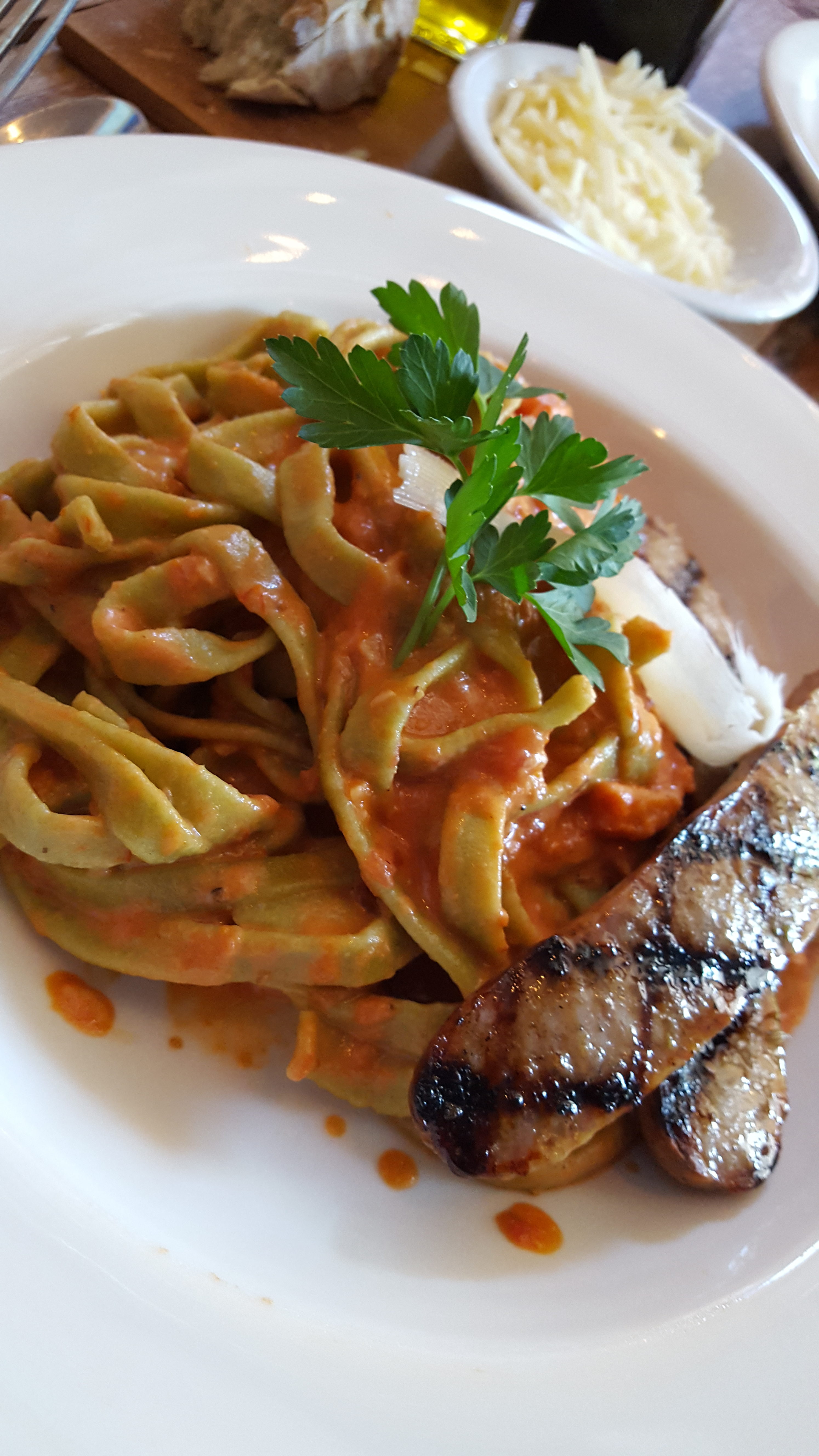 Everything on the menu looked so good that it was really hard to decide. So, we asked Chelsea what she would recommend. It is so nice to find someone who knows everything about the menu, wine list and how to pair things together. While we were making our selections, Chelsea brought us freshly made bread, shredded Asiago cheese, oil and vinegar. Our entrée selections were Rosarno and Roma which embodied the essence of everything Italian. Rich sauce, spicy sausage, variety of cheeses and pasta. Italian cuisine is not complete without a glass of wine, so Moscato was my wine of choice based on a recommendation from Chelsea.