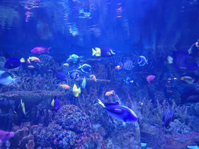 I do love me some penguins and really enjoyed hanging out in this fun place. It took a bit for the family to pull me away from the cutest little creatures on earth. As we made our way along the center tank we were glad the people were moving slow because there was just so much to see. Turtles, Sting Rey’s, fish of all kinds all nestled in beautiful coral and foliage. There were tanks upon tanks of just about anything you could imagine. One of the most beautiful tanks held jelly fish of all sizes. It was pretty busy but there is so much to see, so take your time and go slow. You do not want to miss anything.