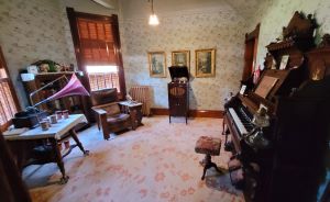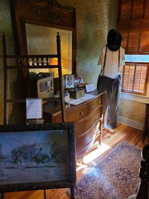 Karina let me know that my next stop should be a short walk to Boldman House. As I started off on my way, it was a beautiful day to walk around the community taking in all it has to offer. From the older buildings, to the train car and statues of what makes this community so great. As I neared the Boldman House I realized just how beautifully well restored, taken care of and loved that this piece of historic Dayton Washington is to this community. Loretta met me at the door as I was putting on the booties required as you entered the home. As museum director, she was a wealth of knowledge and history on this home but also had such a passion for the people who resided here. While their was a bit of restoration that needed to be done and some pieces of the home had to be replicated it was still such an amazing site to see. The lengths that the board has gone to in order to keep this as original as possible is truly a blessing. As an example, the wallpaper in the first room you enter was beyond repair, so they found a piece of the original paper, sent it to the Smithsonian and they replicated it and sent it back to be in stalled in the same area. Loretta took me through each room, shared tidbits of the lives of the Boldman family. Everything from the music they loved, the way they spent their days and the items that were near and dear to their hearts. Classified as middle class, the home was filled with many beautiful pieces of furniture, a piano, organ and two different types of music players. We listened to the music from the Edison standard cylinder phonograph – they have some of the original cylinders on display but don’t use them because of their fragility. They did have some replicas made of the ones they have so we could listen to some of the favorite music of the Boldman family. Plus, this phonograph could play and record sound simply by speaking into the big trumpet-bell on the machine. The other phonograph that played flat records was the Brunswick Model 110. You can see by being in these two rooms, music was a big part of this family.