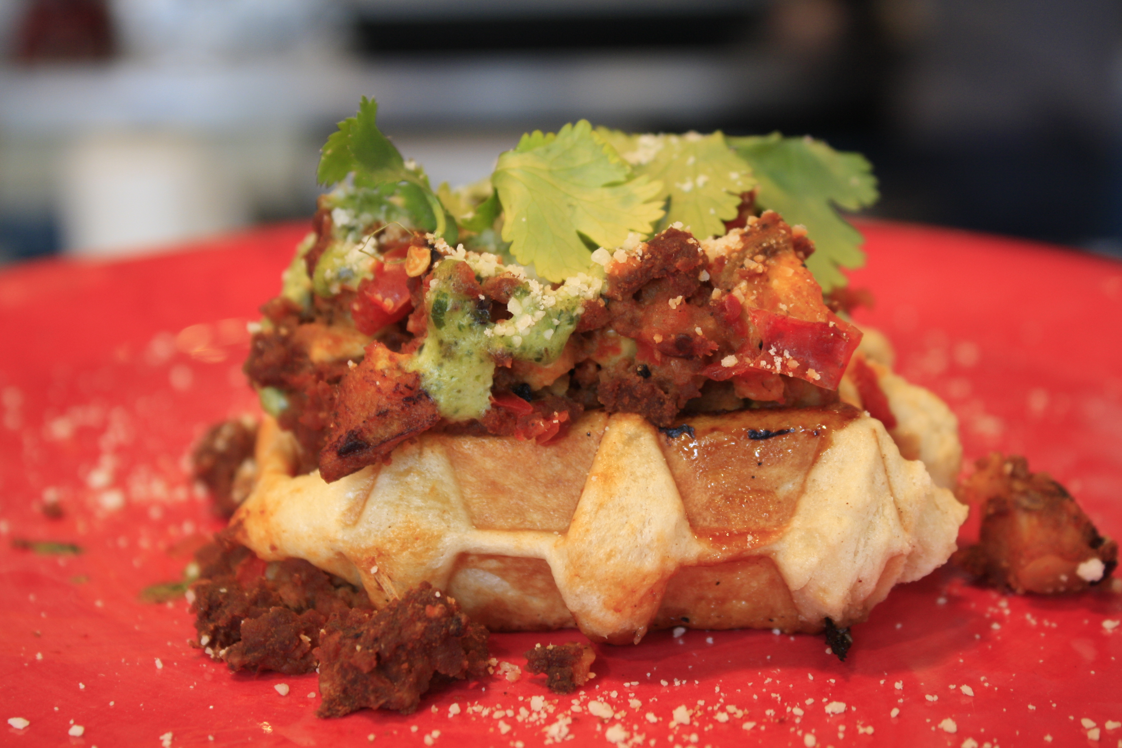 Waffles are one of my favorite foods and after Saturday’s “War of the Waffles” at Waffle Me Up in downtown Boise, I have 4 new favorites. Shane Matlock, owner The Burgundian: Coffee and Waffles in Providence RI came home to Boise to visit family. Hector Garcia, owner Waffle Me Up in downtown Boise invited Shane to throw down in a waffle war where East Meets West. This epic battle provided a sweet and savory waffle from each chef and they were amazing. If you missed out on this event, here’s a recap of what went down on the plate for all to enjoy!