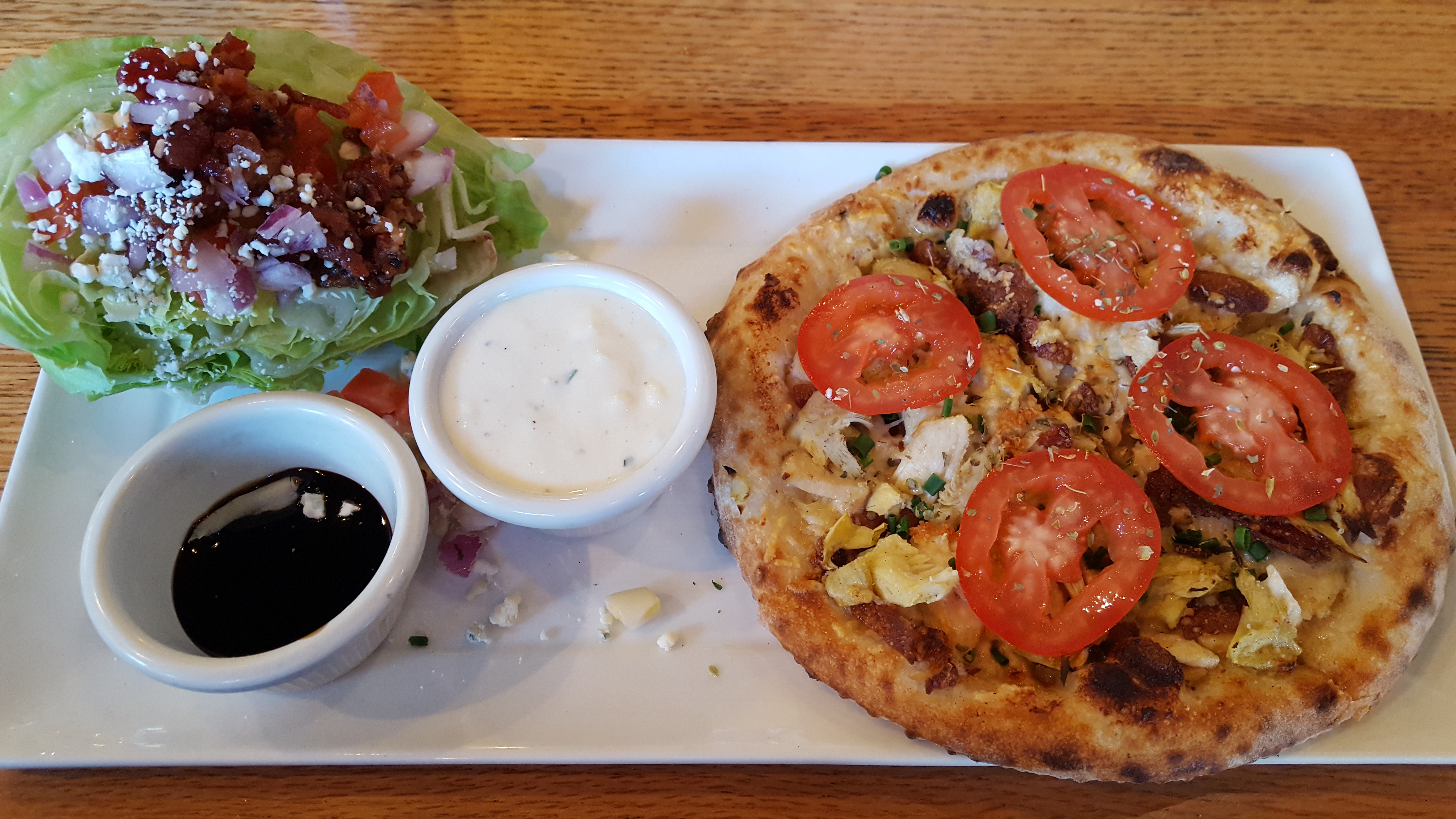 After spending some time looking at the menus of the restaurants in the Old Mill District, we decided to stop at Flatbread Neapolitan Pizzeria. The lunch special was $10.95 – pick two items from pizzetta, half sandwich, half salad, mac & cheese or tomato basil soup. So much to choose from but I needed to experience a pizza. So, I enjoyed the “Alfredo the Grate” Pizzetta and the Italian Wedge Salad. My husband just enjoyed the Italian Wedge salad but had the Lemon Basil Vinaigrette dressing. This dressing was amazing and I watched as they made it so it was truly fresh. In addition, I got some to take home as well! The atmosphere was fun, lively and you watch as the chef’s make the pizza in the community oven. Not the mention, the food was AMAZING.