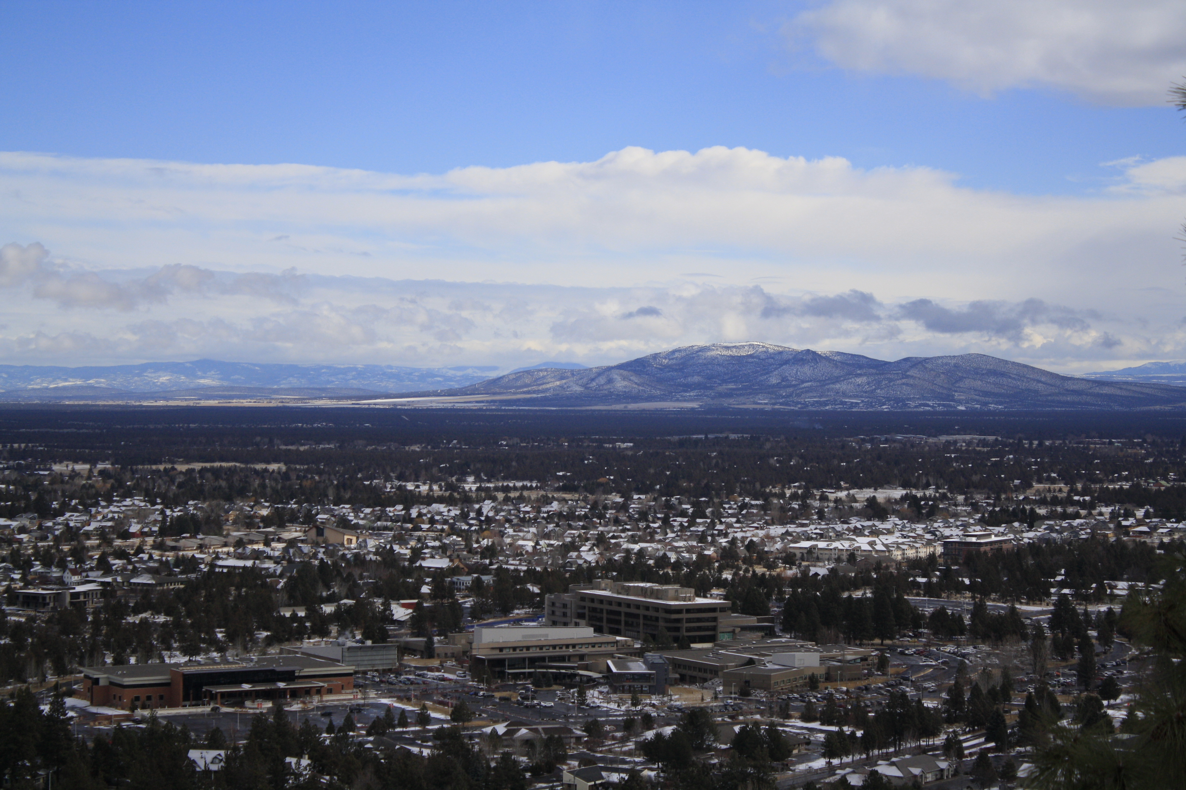No visit is complete without experiencing the Pilot Butte Hike. We headed up early in the morning and you want to dress accordingly. On our adventure, we experienced a bit of snow, warm sun and some mud. Go figure – a little bit everything all along the way. We decided to go for the trail which gave us a us a mostly uphill climb with beautiful views of Bend below. You can take the road up but we wanted to walk through the trees and challenge ourselves. It was a tough go since we are still trying to get into shape but worth the effort. The view from the top – incredible. These 360 views include flatlands, mountains, the city and everything in between. This is a popular spot for those interested in exercise. We passed dog walkers, hikers, runners and people like us!